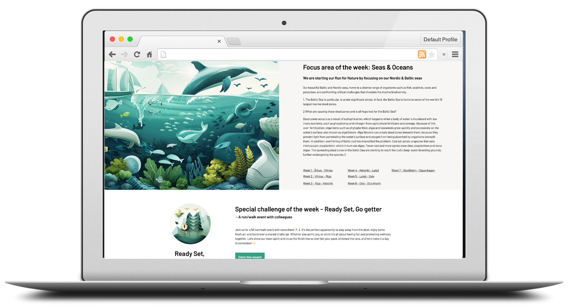 The challenge was made online on a webpage with integration to the fitness app Strava, making participation supereasy to join. The participants was divided by countries and the gamification part made it a very fun challenge between the countries and added some friendly competition over the boarders. The initiative also encouraged people through weekly challenges such as Plogging, Walk to work, take a walk/run with a co-worker etc which kept engagement high all through the competition.